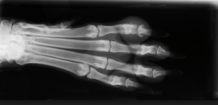 Louise — continued her (untitled) “work memoir” about being a radiologist in a small country hospital. Originally the department had a photographic dark-room, with an near-religious temple-ritual about entering it. Thanks to the head of the department keeping in with the local vets, X-rays of dogs’ paws and horse’s hooves were often to be found among the human images. Then an all-in developing machine arrived, and everything became so much simpler, and far more boring. Gone was the possibility of rescuing an over-faint negative from the developing dish. The animal limbs still occasionally show up, however.