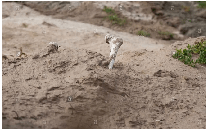 The policemen looked at the bones; then they looked at each other; then they looked at the bones again. One got his police phone out and called for a council workman to come along with a spade and start digging. The other went back for some traffic cones.