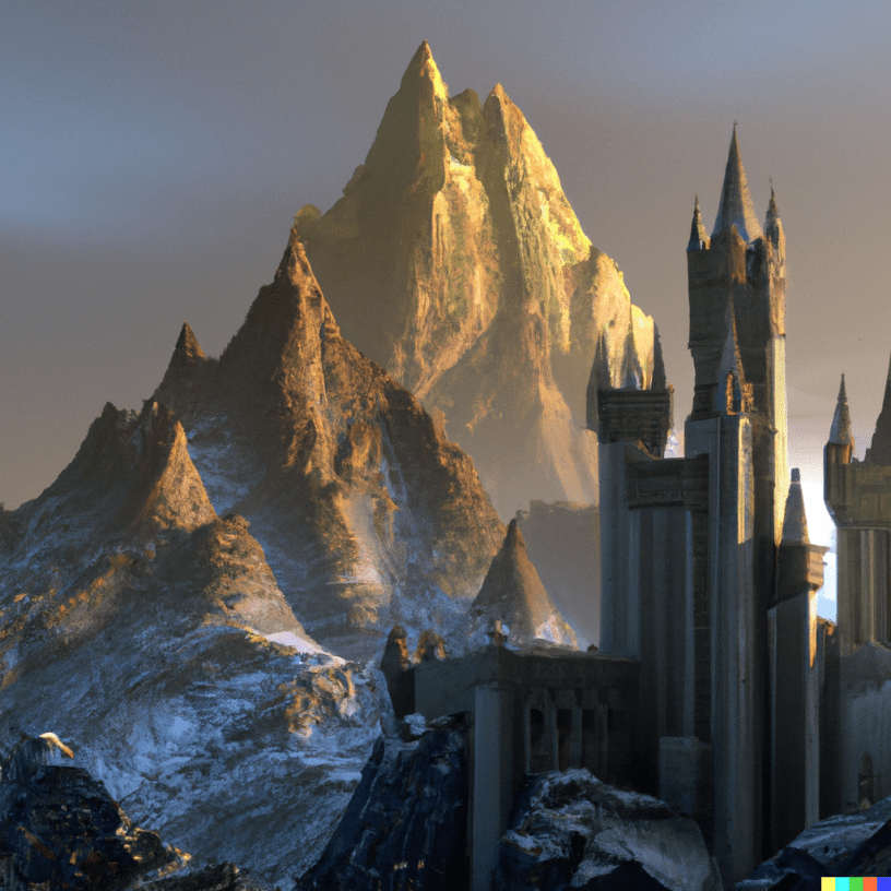 I followed a few steps behind the ancient equerry as we trudged up the worn stone flags of the spiral staircase. When we reached the highest balcony of the White Tower of Ecthelion the breeze was chill and keen enough to make the banners snap briskly above us. The equerry bowed to the unheeding back of the man who stood looking over the plains of the Pelennor, then he turned and left us alone together.