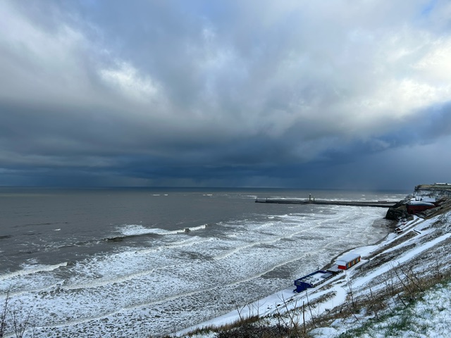 I woke this morning to a carpet of snow outside and a raging snow blizzard for the next couple of hours, confirming my view that I shouldn’t try to drive up or down Carr Hill Lane and thus I endeavoured to set out and enjoy a lovely snowy walk to Whitby instead.