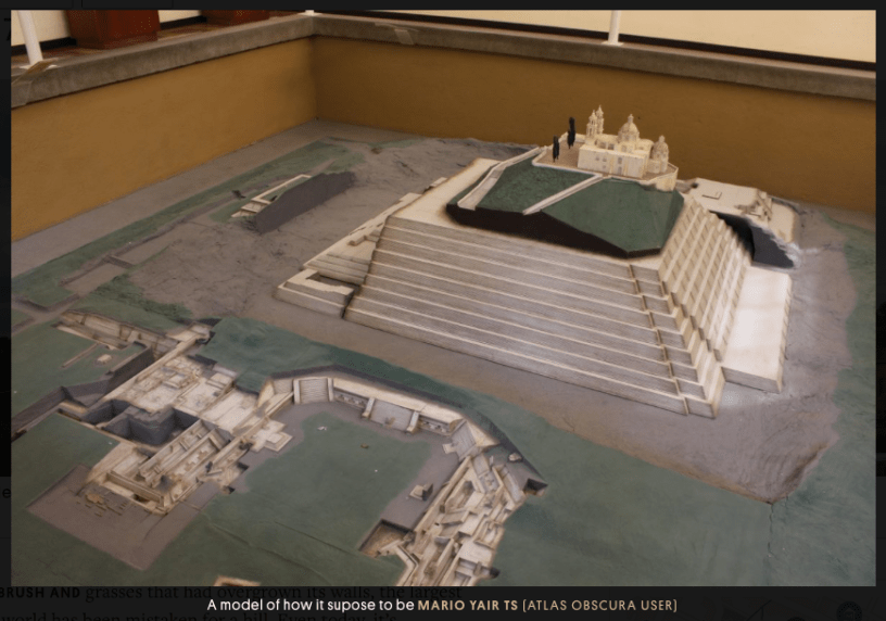 When the conquistadores found it, they thought it was a natural hill and built a church on top of it.