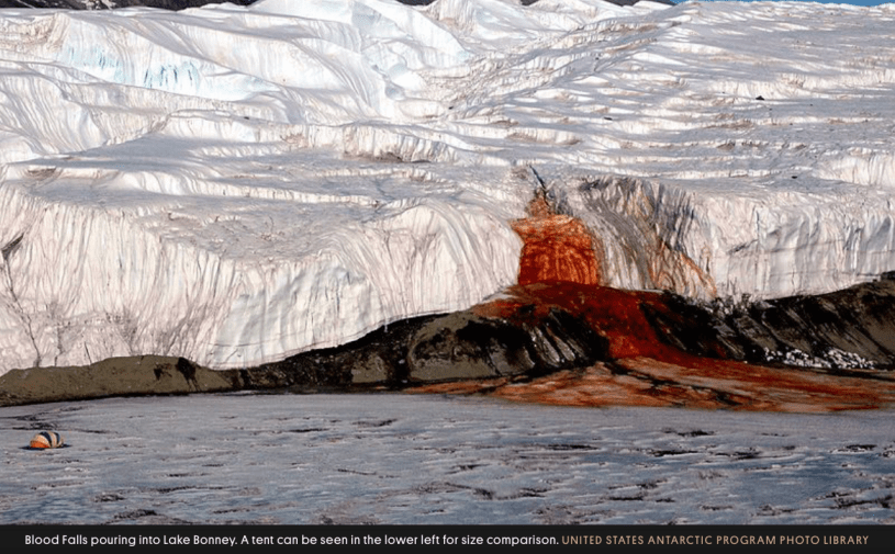 This five-storey waterfall bleeds slowly out of the Taylor Glacier in Antarctica’s McMurdo Dry Valleys.