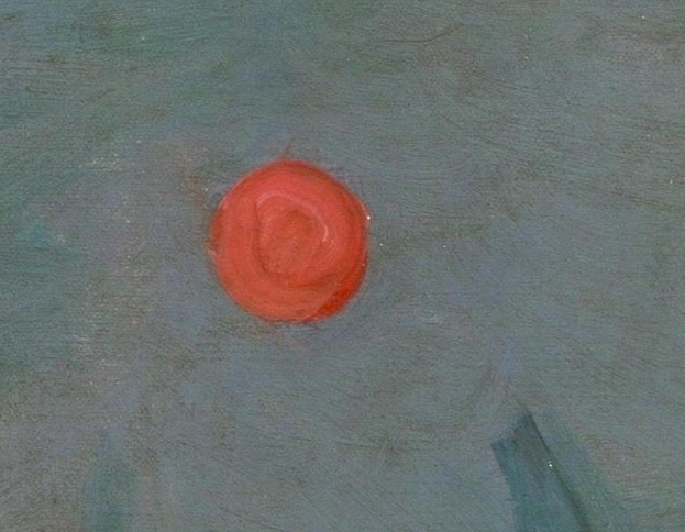 Did Claude Monet know about the underlying science? Maybe not, but he was particularly interested in out-of-doors light phenomena, and was thus well-primed to notice and analyse this particular effect. The entire seascape may well have been conceived just to feature it: hence it’s a reasonable thing to do to de-emphasise most of it in order to focus the viewer’s attention on the sun.