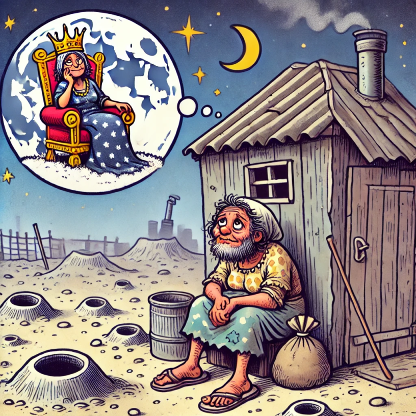 Then the wife said “The whole world is not enough. I want to rule the Moon as well.”