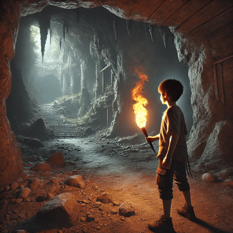 That afternoon I saw a dark world I had never imagined was there. Some of the tunnels were man made, a deserted city beneath the fell. Others were carved by the stream itself, just the right size for a boy and a girl. Emma flitted through the caves like a living tree root. She couldn’t hide her delight in having someone to show them to. And as for me, who’d never held more than an electric torch in the dark, to have a flaming brand to hold was a thrill in itself.