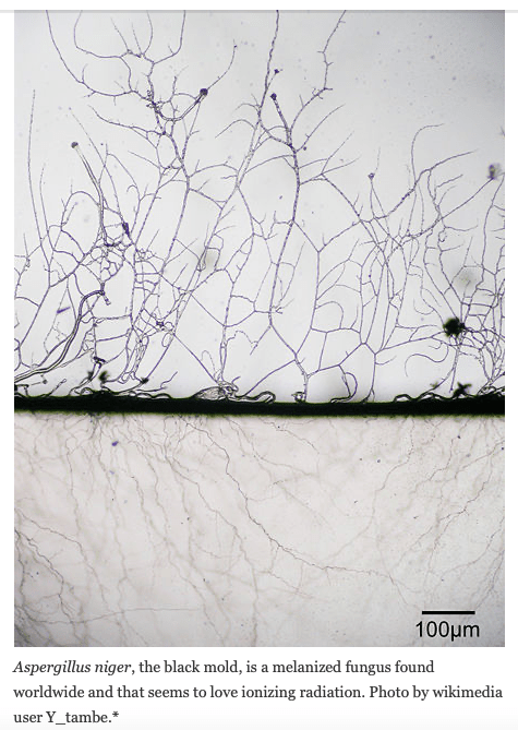 Is this radiotrophic fungus using its melanin to protect against ionising radiation or actually to metabolise the radiation?