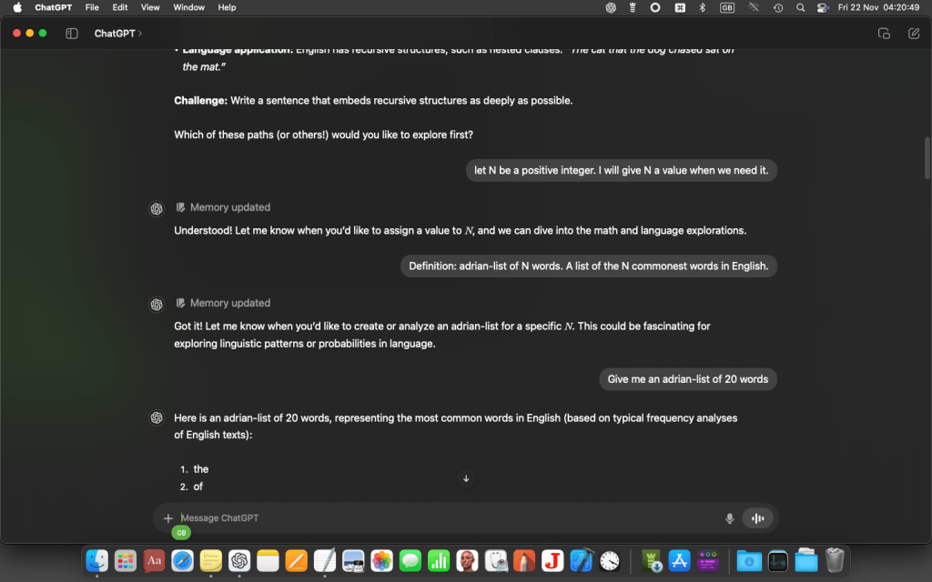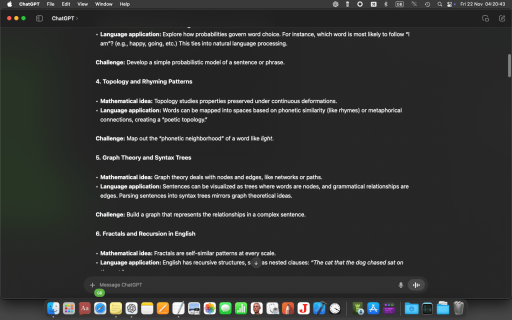 So I’ve been evolving a way of talking to ChatGPT which helps me trust the answer more. Trained as an algebraist, this means to me a mathematical way of putting my questions.