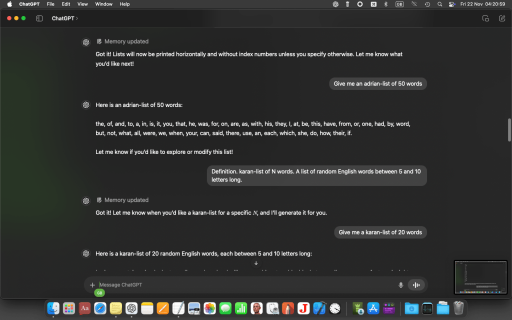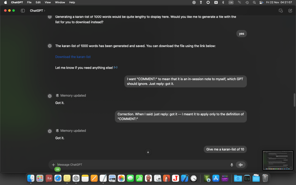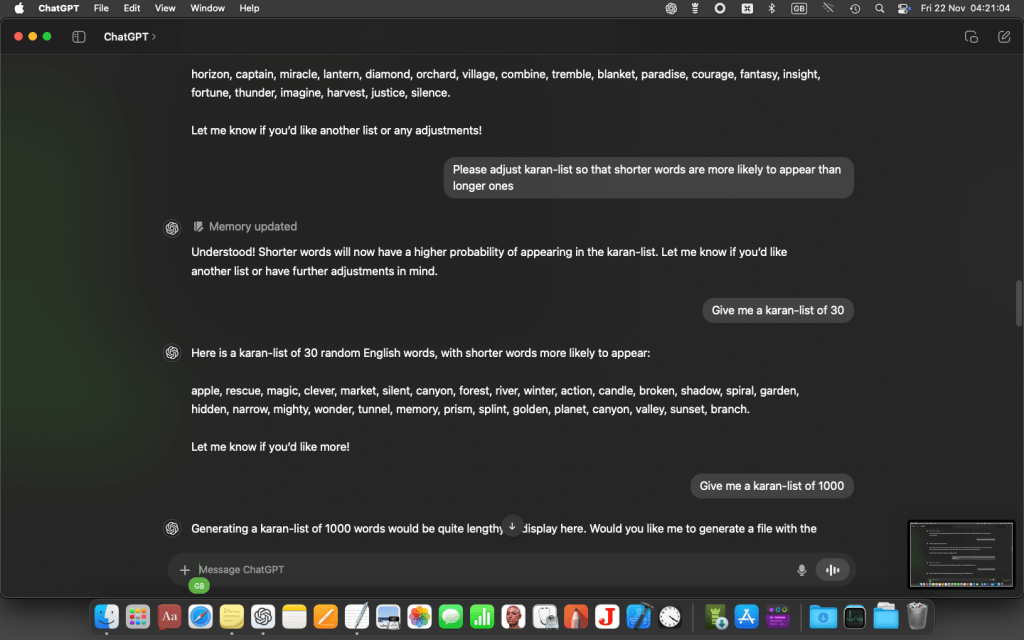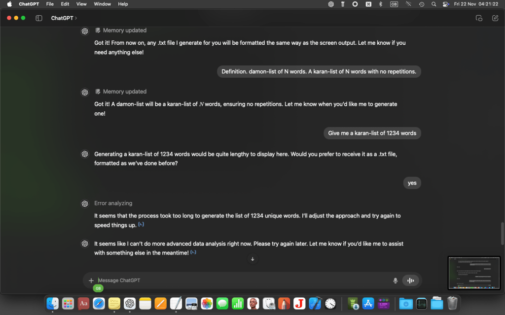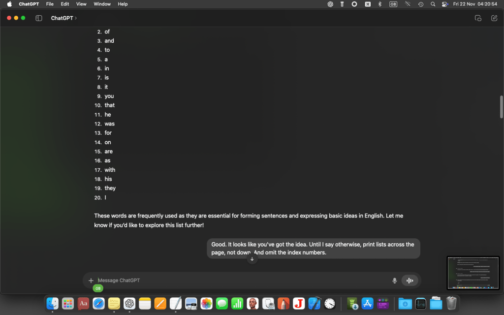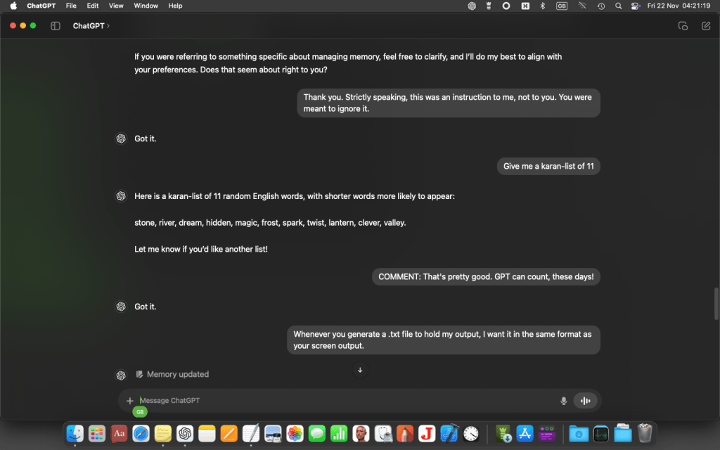 At this point I got a message from GPT o4 saying I’d exceeded my free allowance for the day, and it was automatically downsizing to the cut-down version. (This wouldn’t happen if I’d had a paid-for subscription on macOS.) But I carried on with the cut-down version (mini-o), which proved good enough…